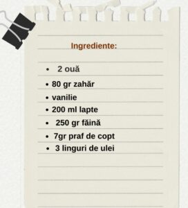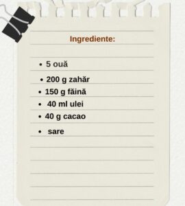 ∗ Făina și cacaoa se cern obligatoriu, apoi se încorporează cu mișcări largi, pentru a nu pierde aerul din compoziție.