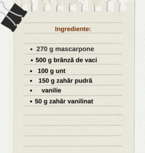 - La final, adăugăm mascarponele și îl încorporăm ușor, mixând doar câteva secunde, cât să se omogenizeze. Nu mixăm excesiv, pentru a păstra crema fină și stabilă.