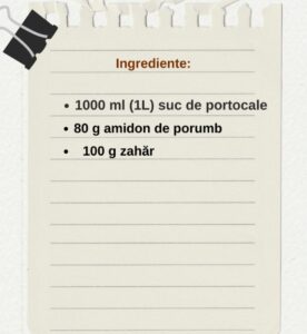 ∗ Amestecăm foarte bine zahărul cu amidonul, apoi îl adăugăm peste suc. Astfel evităm formarea cocoloașelor atunci când compoziția începe să se încălzească.